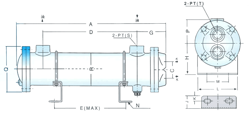 形式編號 A C D E G H J K L M N P Q R S T 最大流量L/min 散熱面積m2